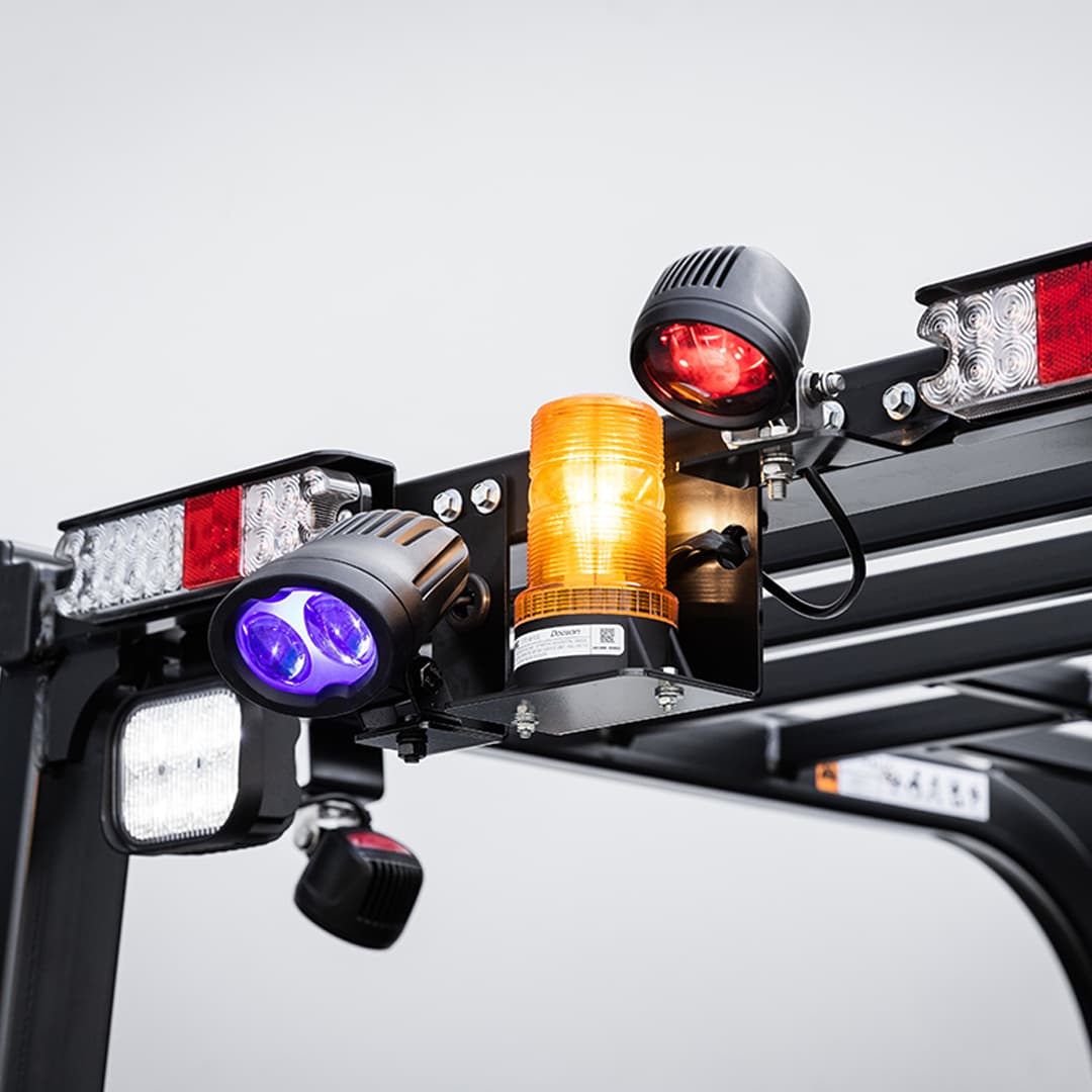 LED-lampor är bra för allmän belysning, medan varningsljus och BlueSpot™ kan öka säkerheten i områden där folk går. Vi guidar dig gärna till rätt belysning för dina truckar.