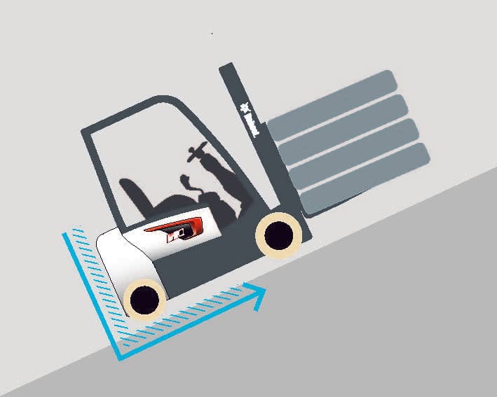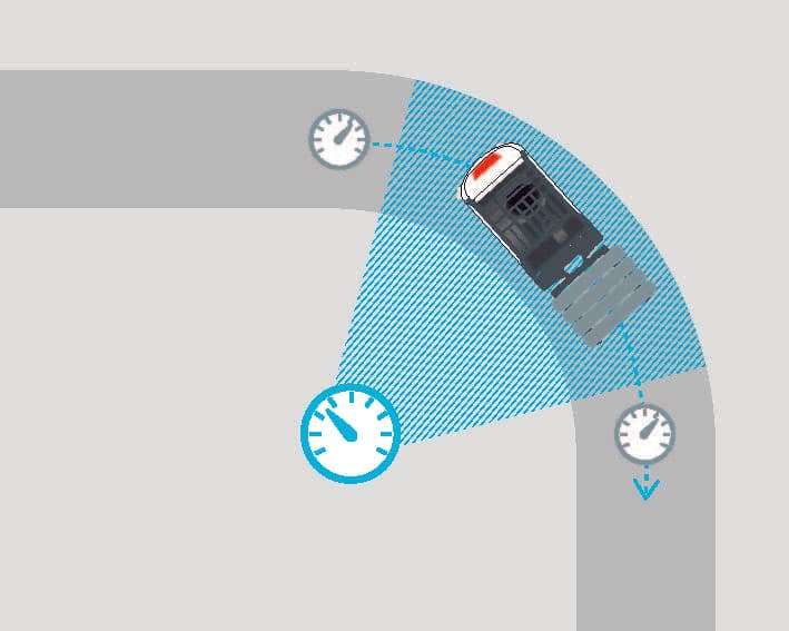 Ökad styrvinkel minskar svängradien och förbättrar manövrerbarheten.