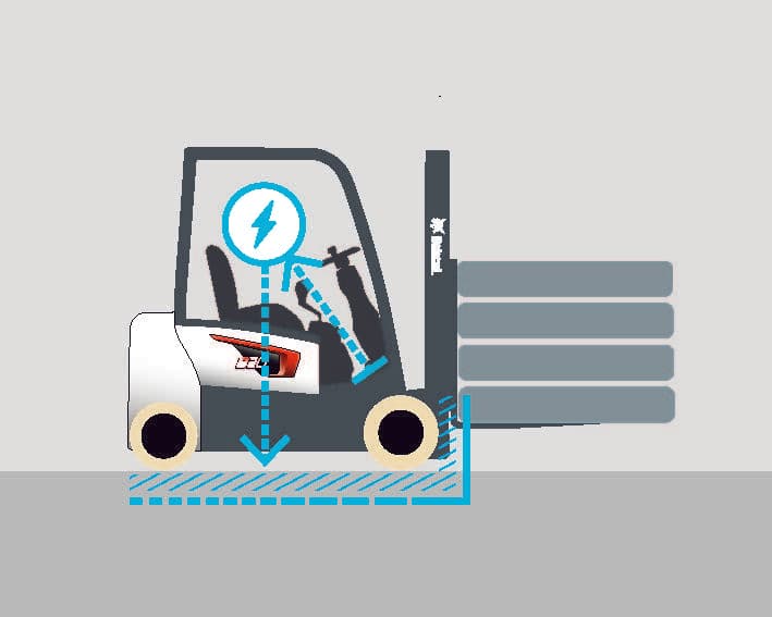 Beroende på hur högt trucken behöver lyfta justeras dess kör- och lyfthastigheter automatiskt för ökad säkerhet.
