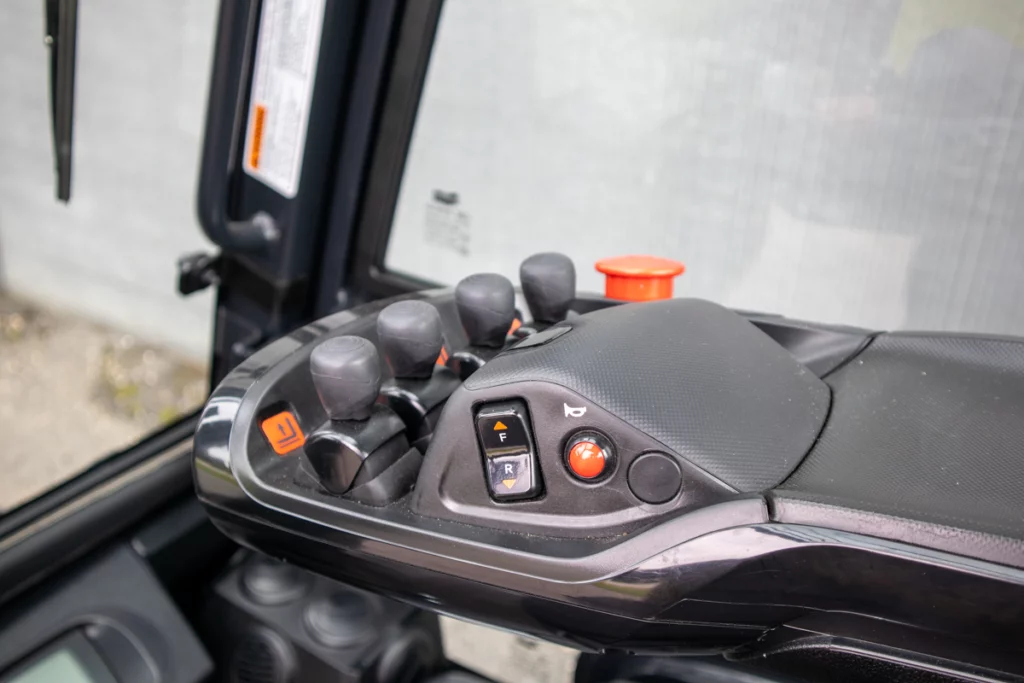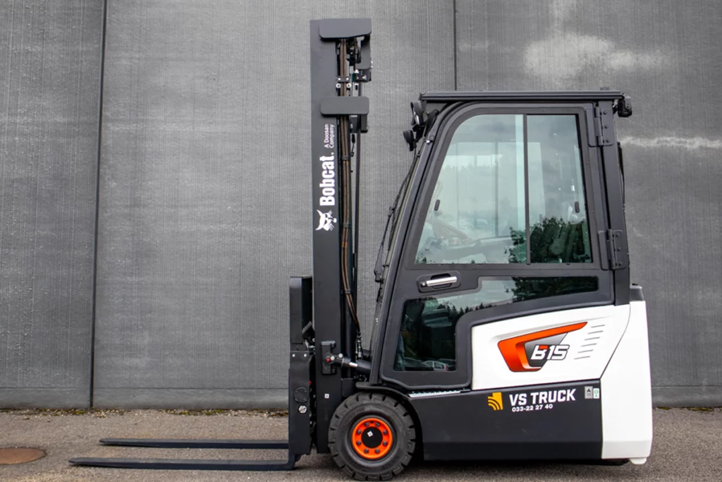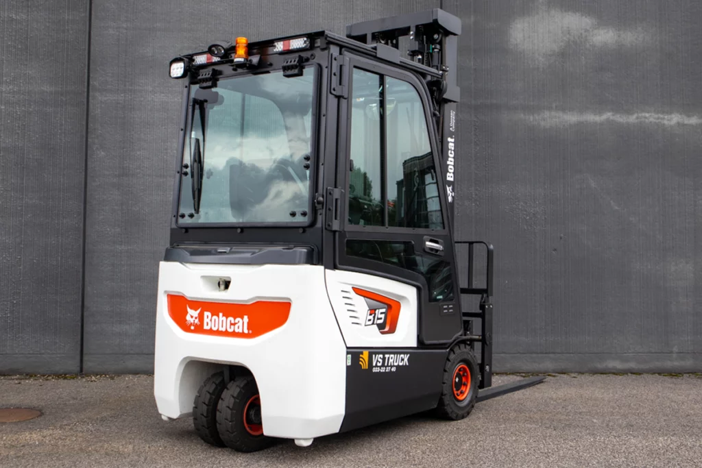 NY välutrustad containergående 1,5-tons eldriven motviktstruck från Bobcat med hytt och hyttvärmare. God lyfthöjd om 4750 mm. Aggregat med sidoföring och gaffelspridning (original) som manövreras med minispakar. VTF-belysning, bluespot, backljus, blixtljus, komfortstol och panoramaspegel.