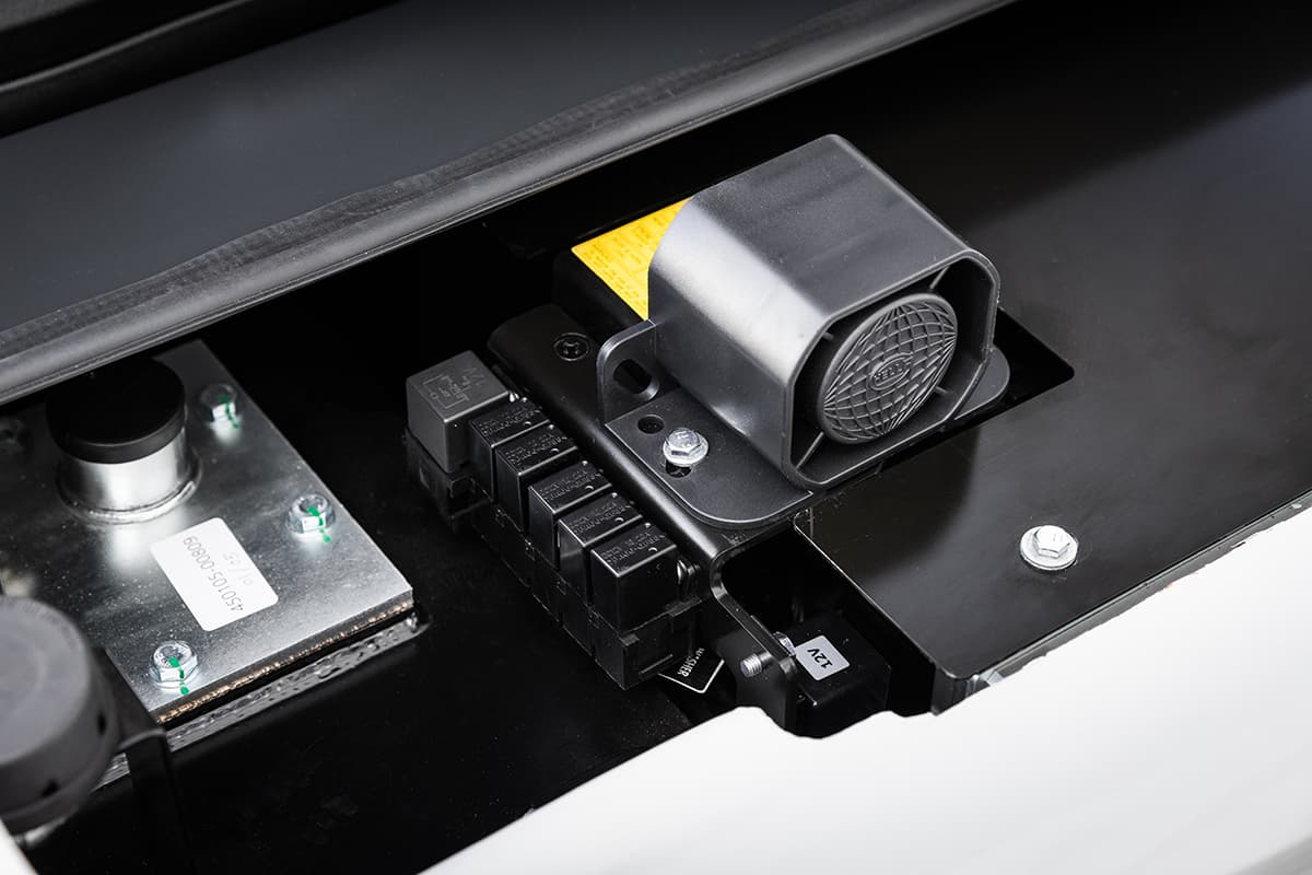 Drivmotorn är skyddad av ett rejält frontskydd, och alla elektriska anslutningar är IP67-klassade.