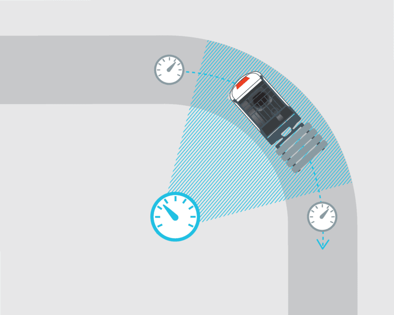 Ökad styrvinkel minskar svängradien och förbättrar manövrerbarheten.