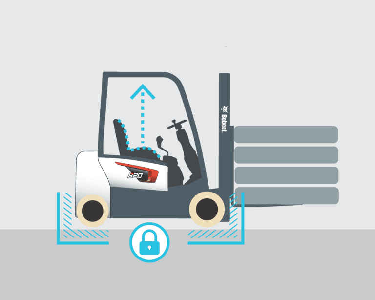 När operatören lämnar trucken obevakad förhindrar det hydrauliska låssystemet oavsiktlig sänkning och tilting av masten. Detta håller trucken, lasten och arbetsområdet säkra.