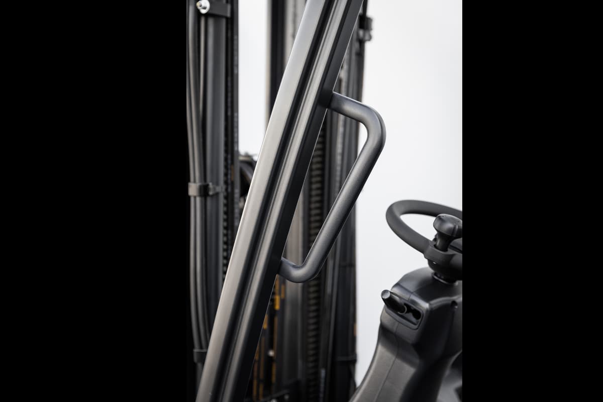 Den uppdaterade designen ökar säkerheten för gaffeltrucken genom att minska mastens svängningar under drift vid maximal höjd. Körhastigheten justeras automatiskt beroende på masthöjden, och vid maximal höjd minskas fordonets maxhastighet med 50%. Guardian Stability System ingår som standard.