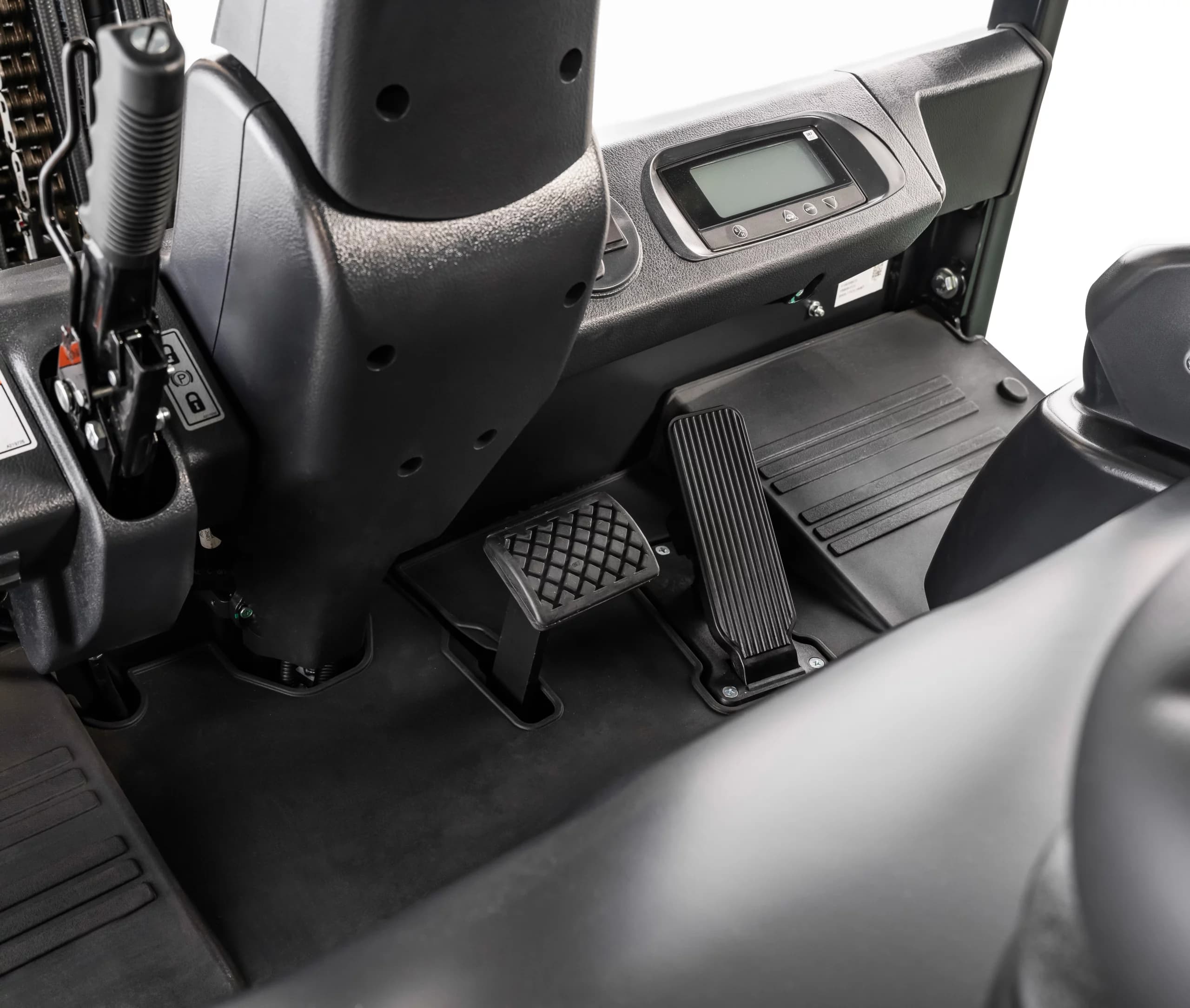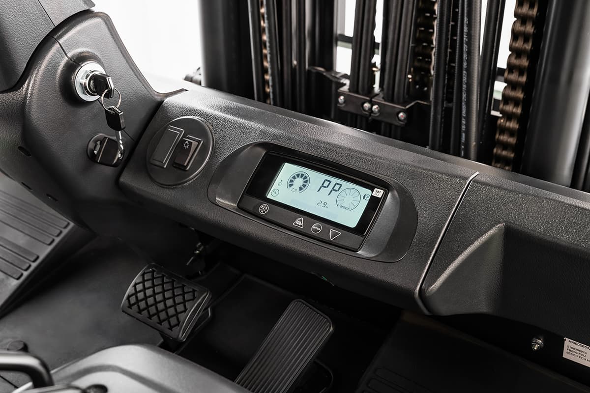 Den uppdaterade designen ökar säkerheten för gaffeltrucken genom att minska mastens svängningar under drift vid maximal höjd. Körhastigheten justeras automatiskt beroende på masthöjden, och vid maximal höjd minskas fordonets maxhastighet med 50%. Guardian Stability System ingår som standard.