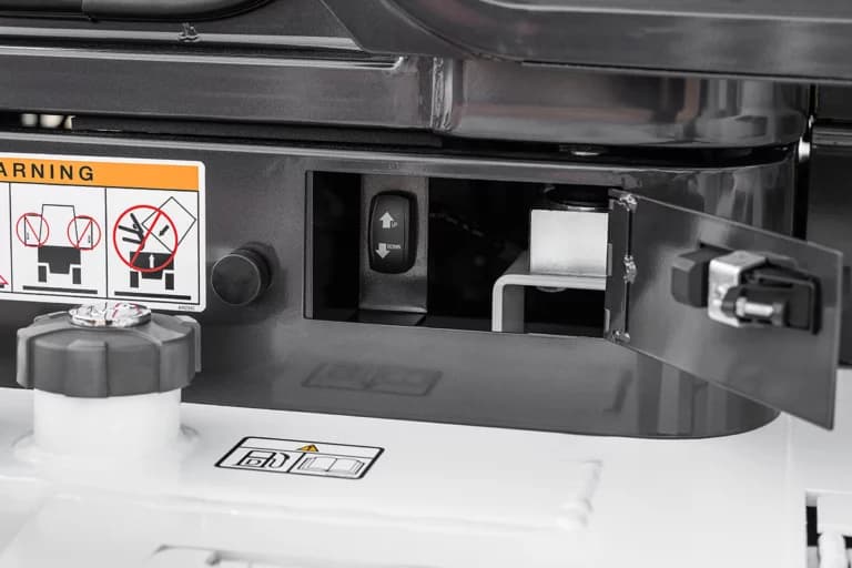 Det bakre handtaget ger stabilitet vid backning och navigering i trånga utrymmen. Dessutom kan signalhornet enkelt aktiveras med en knapp som är bekvämt placerad på handtaget.