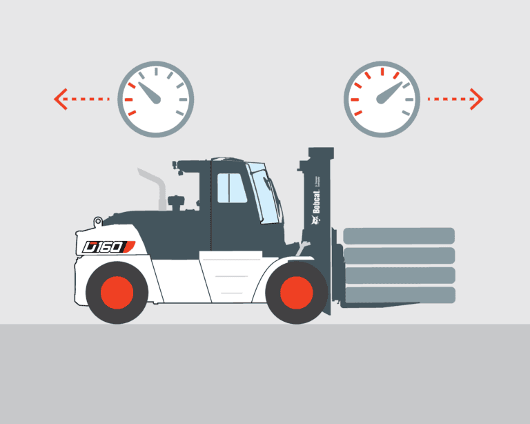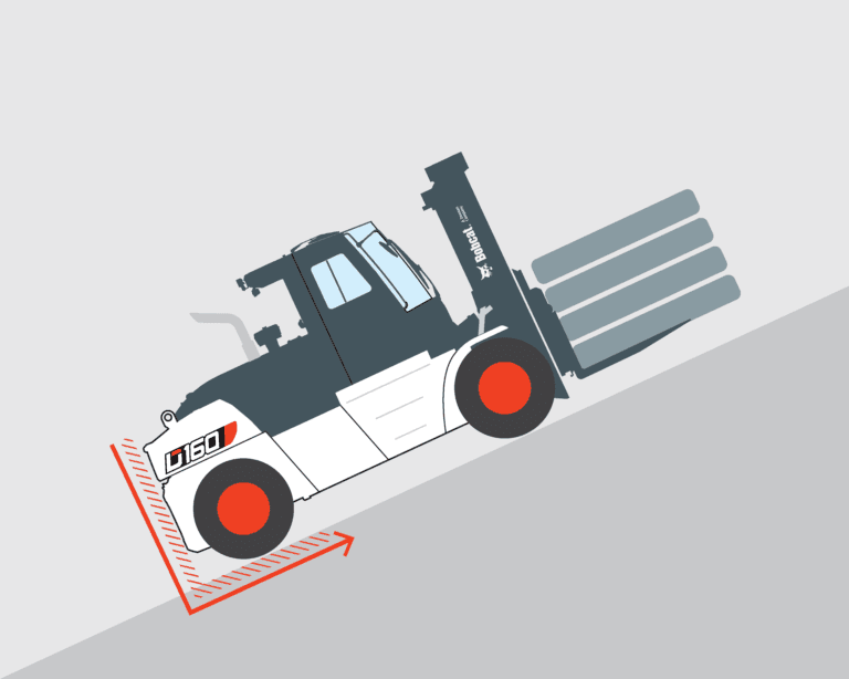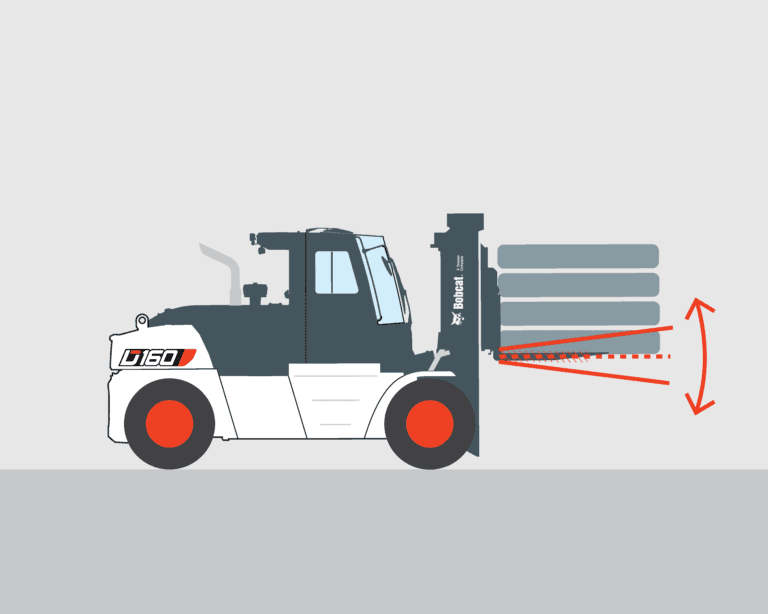 Auto Tilt Leveling justerar automatiskt gaffelvinkeln för att hålla lasten stabil och i nivå på ojämna ytor eller sluttningar, vilket gör lasten lättare att hantera.