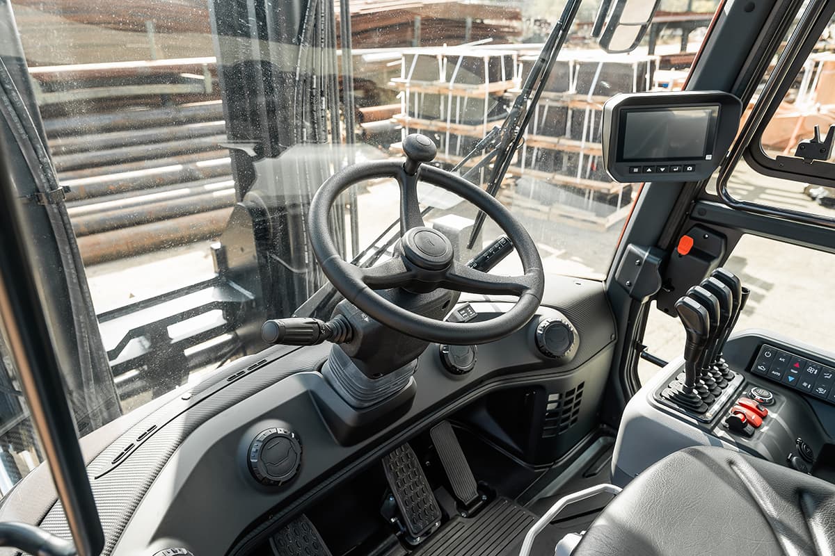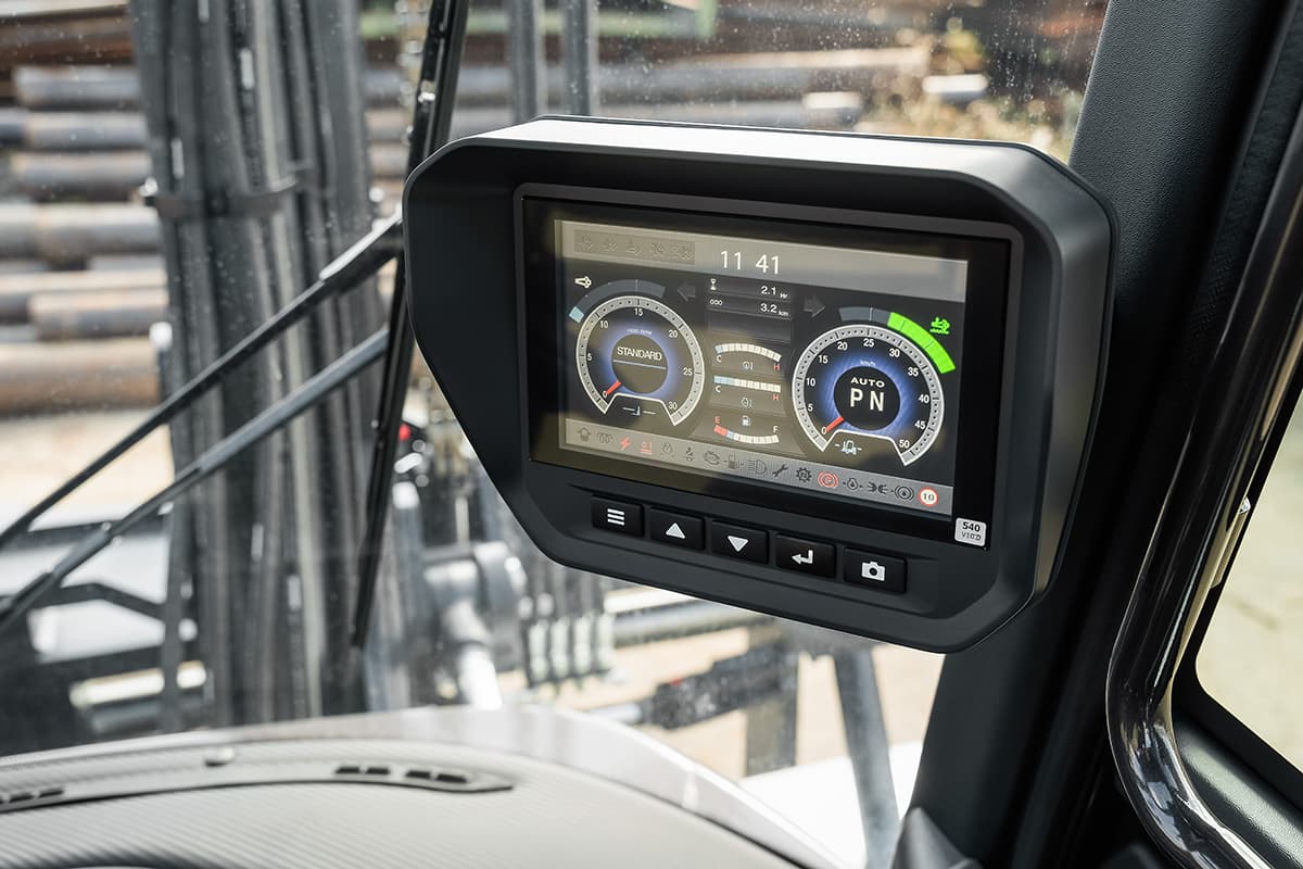 Denna truck har den största displayen i sin klass för bättre användbarhet och sikt. Den är utrustad med en backkameradisplay, viktindikator som tillval, diagnostikfunktioner samt alternativ för fram- och backkameror. Dessutom har den PIN-kodstillgång och ett integrerat underhållsprogram