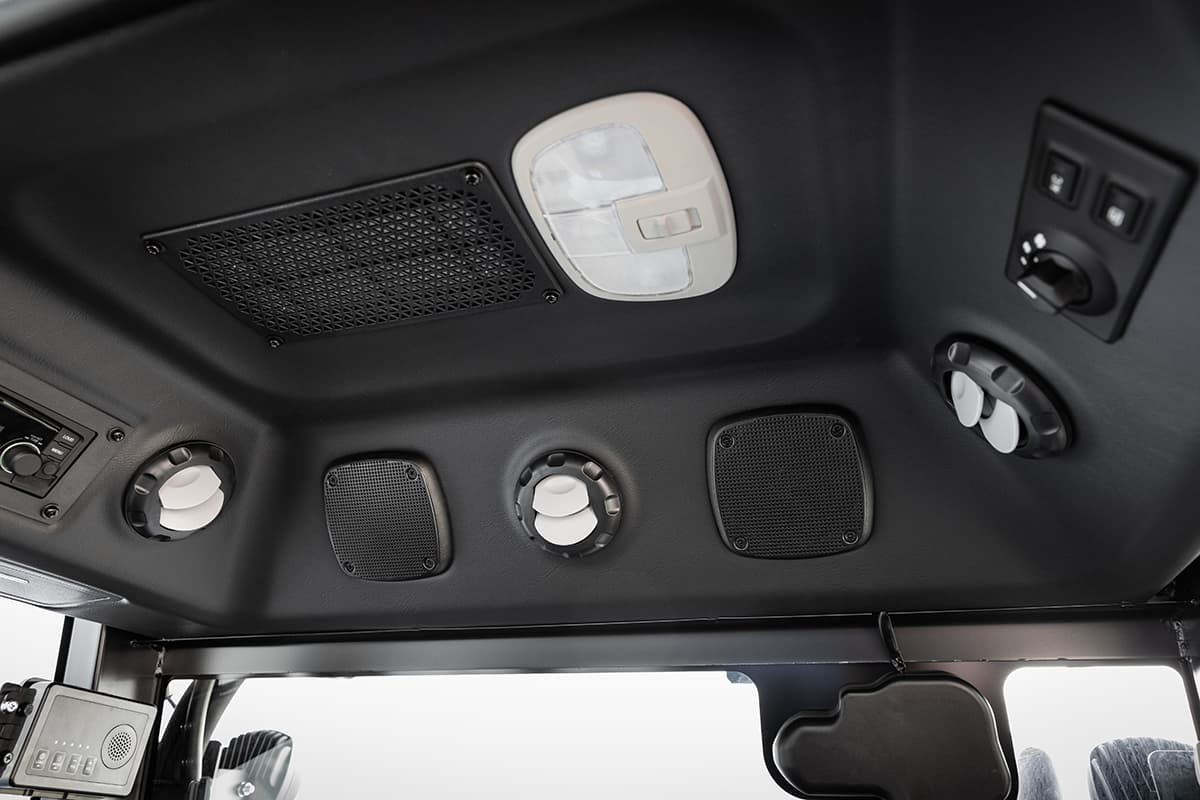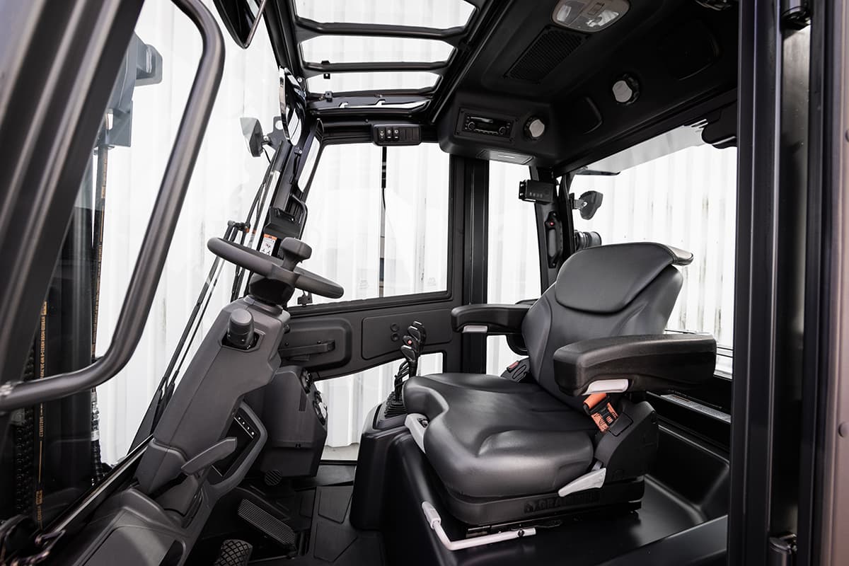 Hytten är konstruerad för att minimera buller och vibrationer, vilket ger ökad komfort och drifttid.