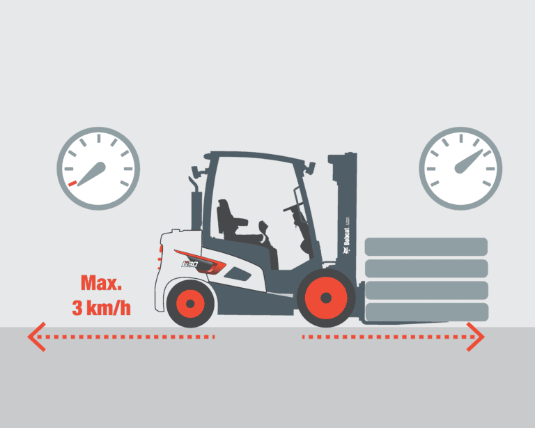 Att ställa in en hastighetsbegränsning förhindrar att trucken kör för fort. Denna gräns kan anpassas för både framåt- och backkörning.