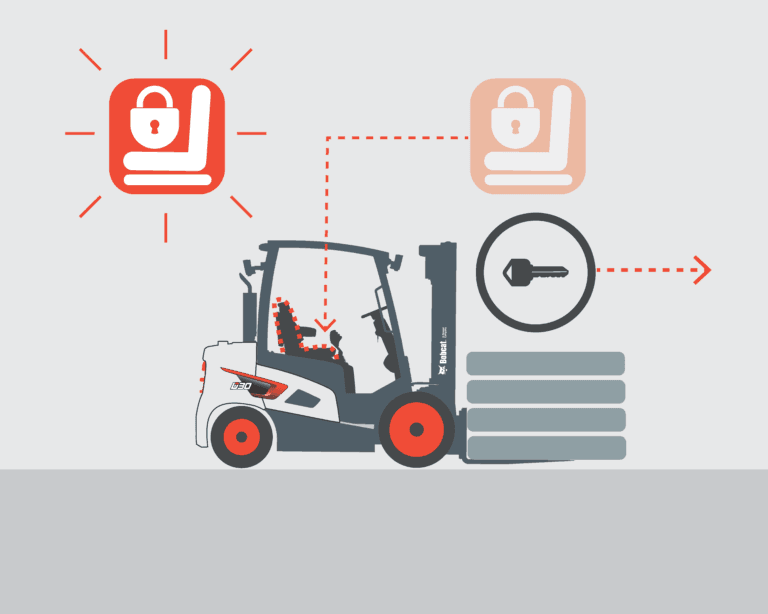 Föraren måste sitta med fastspänt säkerhetsbälte för att kunna köra trucken.