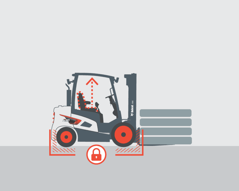 Trucken stannar automatiskt när föraren lämnar sätet, vilket förhindrar oavsiktliga rörelser.