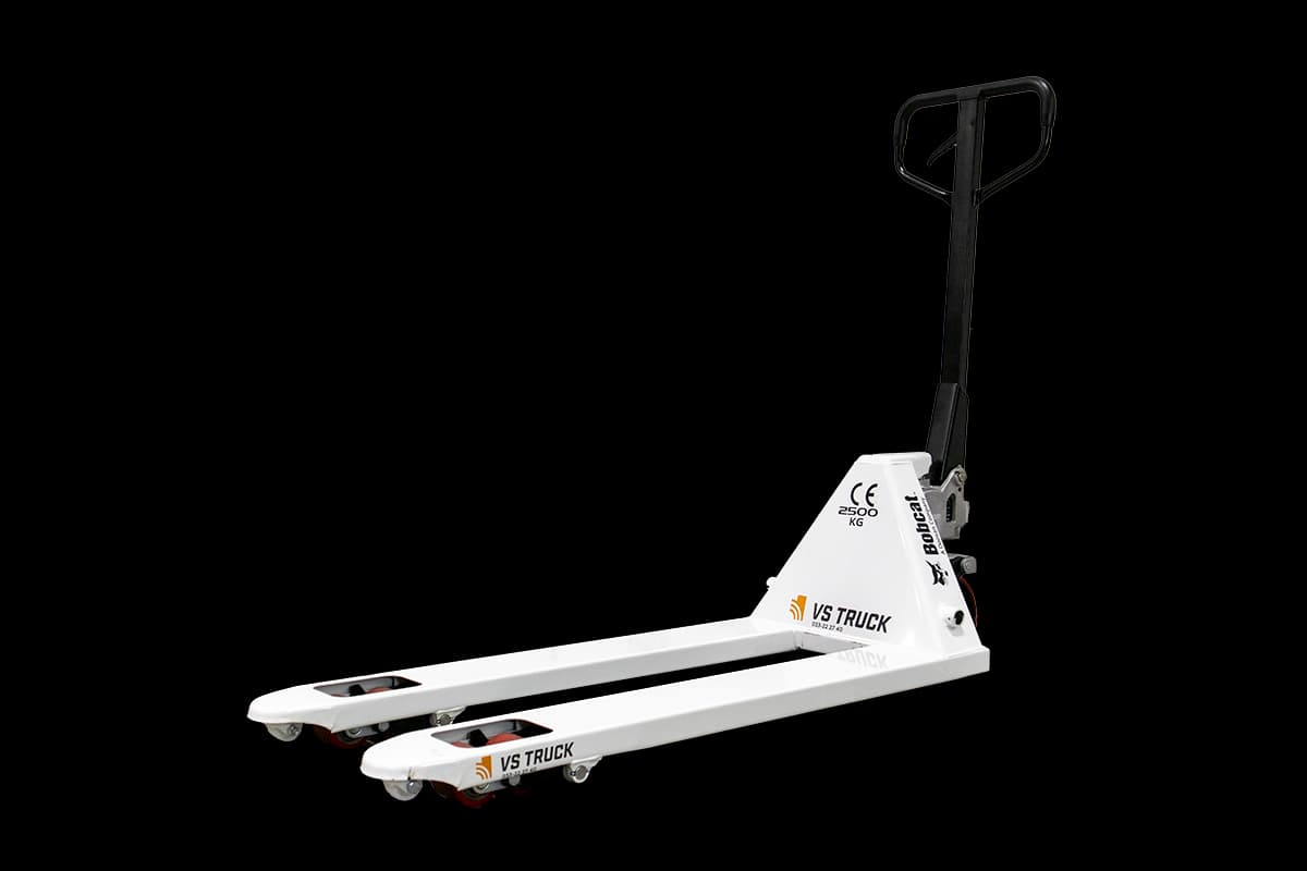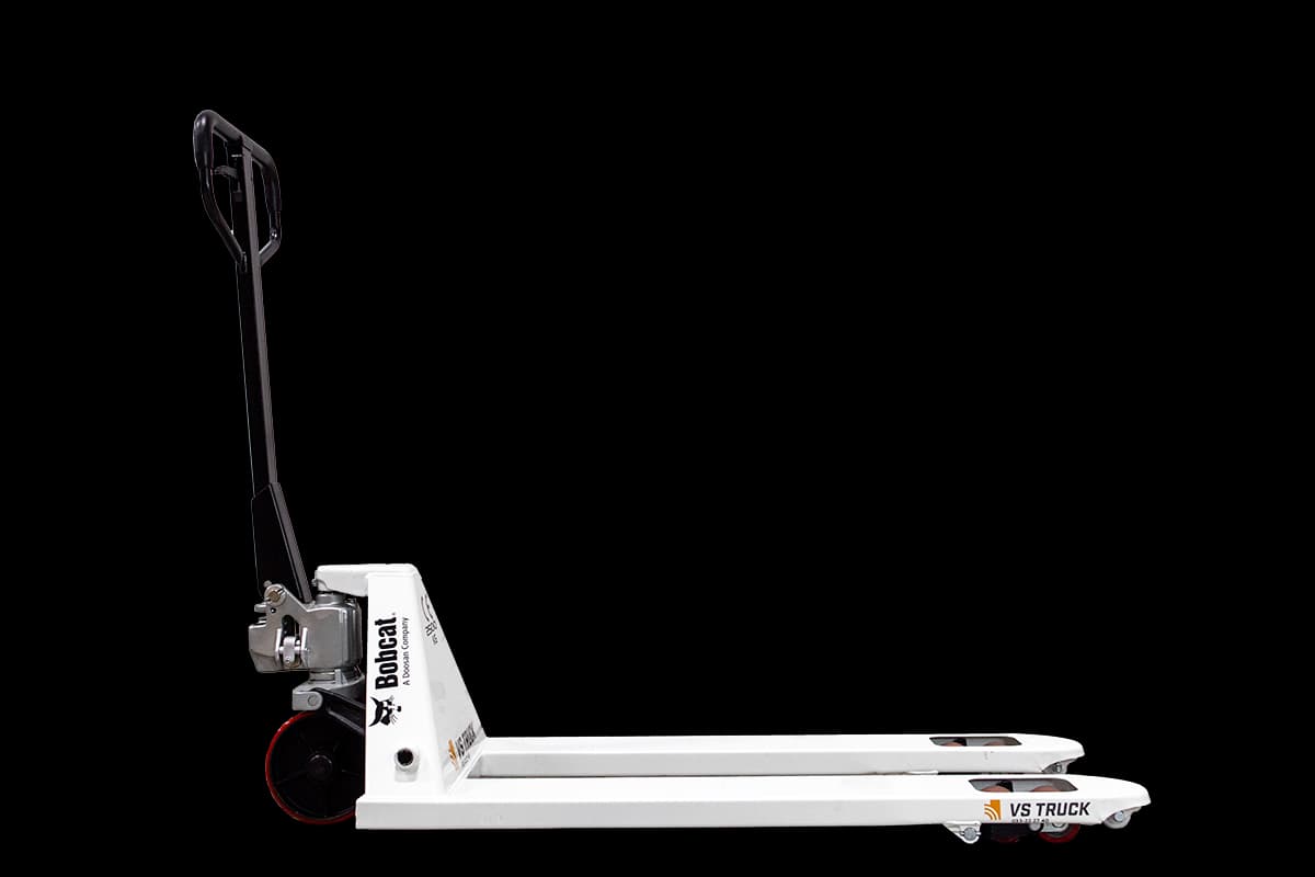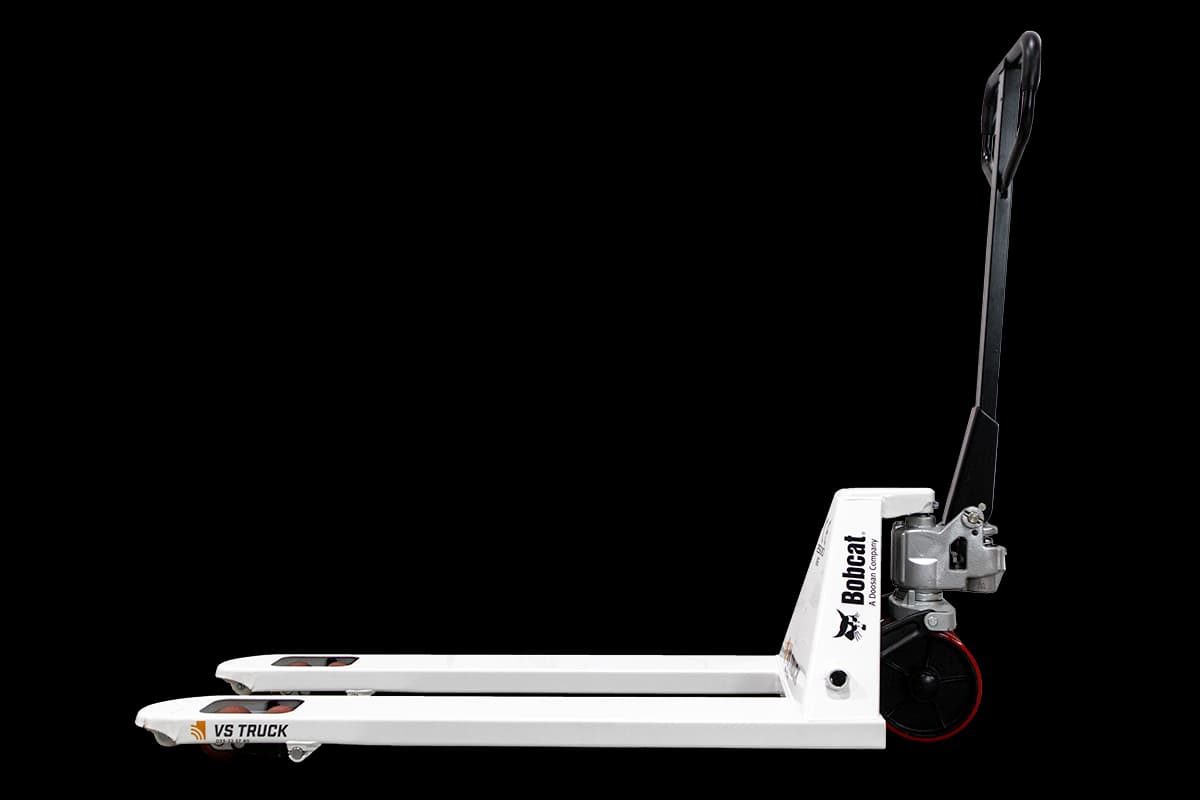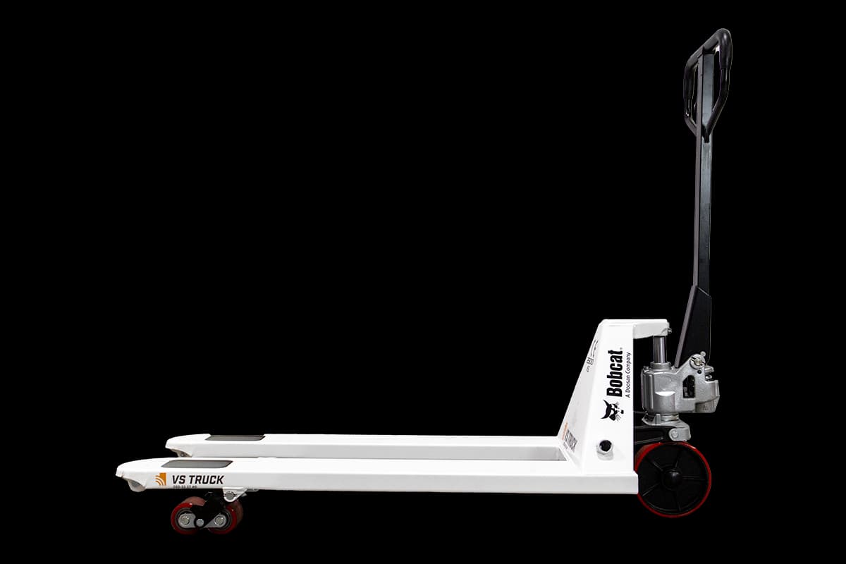 Pallyftare från Bobcat med boggilhjul i polyuretan. 2500 kg lyftkapacitet. 1150 mm långa gafflar (standard)
