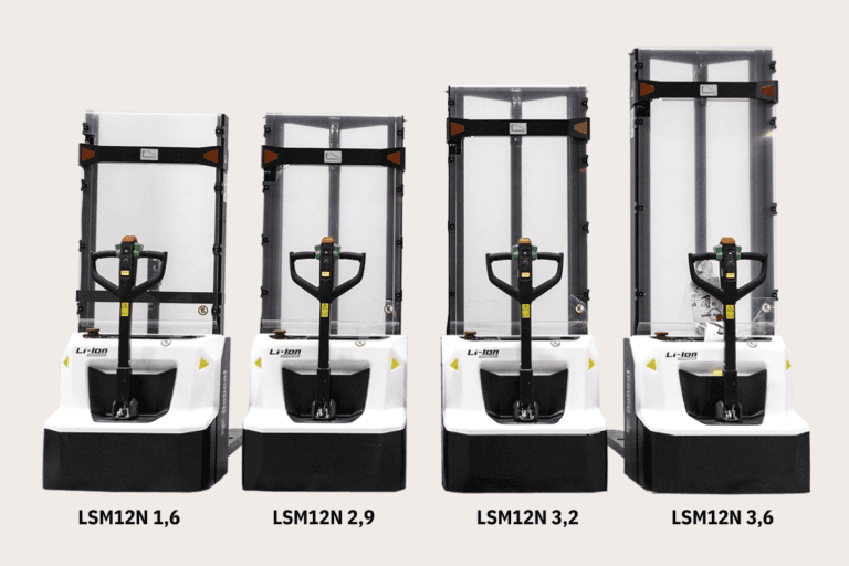 Ledstaplaren har en lyftkapacitet om 1200kg & en lyfthöjd om 3200mm.