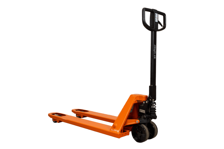 Pallyftare från Toyota/BT med Quicklift. Singelhjul i polyuretan. 1150 mm långa gafflar.