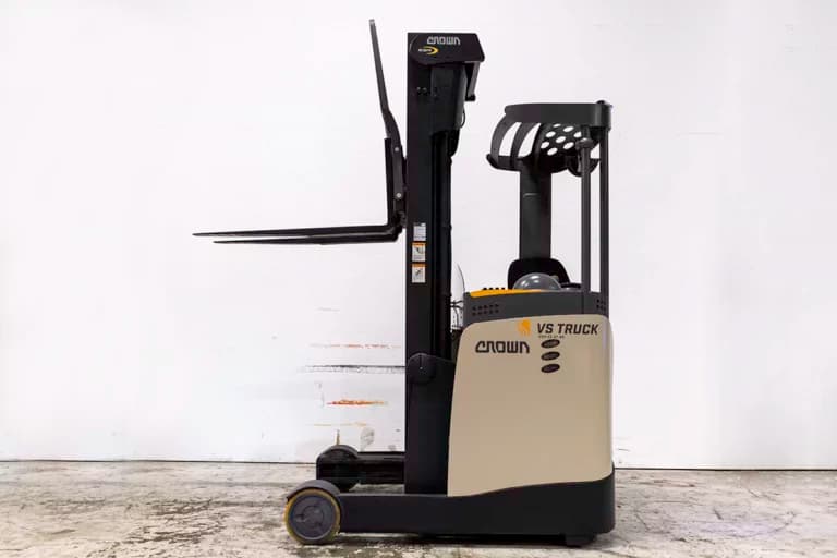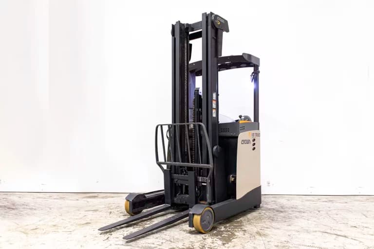Smäcker skjutstativtruck från Crown med god lyfthöjd om 6690 mm. Trucken är utrustad med bluespot bak.