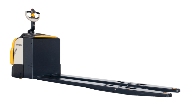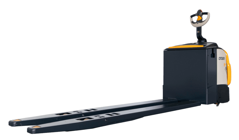 Smidig & effektiv låglyftare från Crown. 2400 mm långa gafflar därmed är körning med dubblar pallar möjligt. 2500 kg lyftkapacitet. Utrustad med servostyrning och ståplatta.