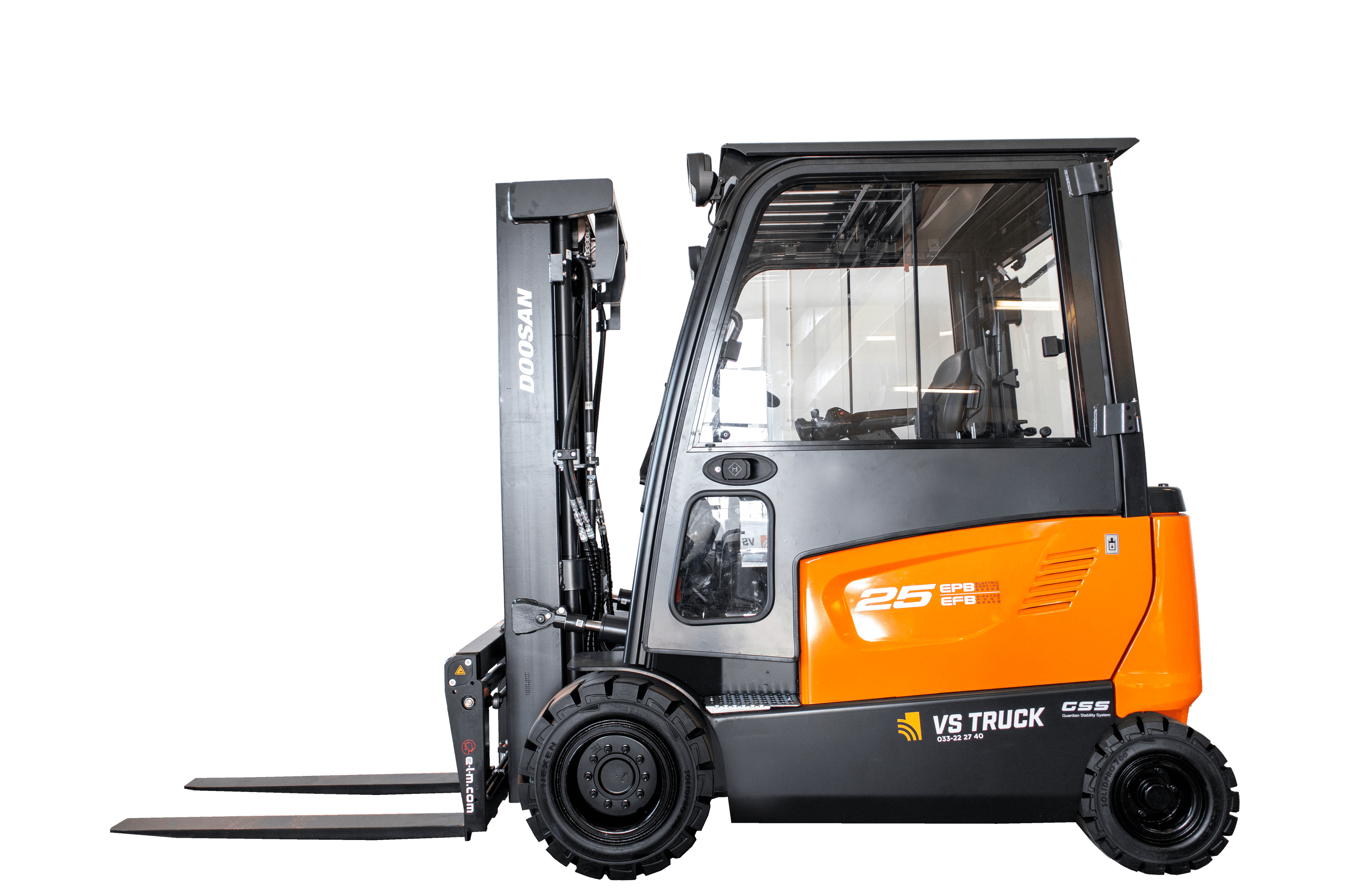 Containergående 2,5-tons eldriven motviktstruck från Doosan, 4-punkts. Hytt med hyttvärmare. ELM-aggregat med sidoföring och gaffelspridning. Rejäl lyfthöjd om 4805 mm. Trucken är också utrustad med VTF-belysning, blixtljus, backljus & panoramabackspegel. 2 års garanti. Demokörd.