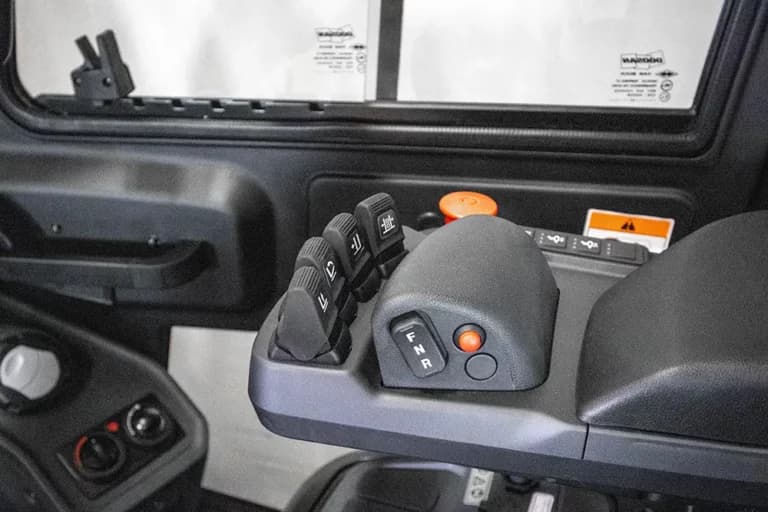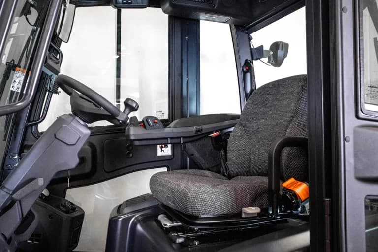 3,5-tons dieseldriven motviktstruck med hytt och hyttvärmare. Sidoföring och gaffelspridning. VTF-belysning, extra arbetsstrålkastare 2 fram + 1 bak, blixtljus. Demokörd.