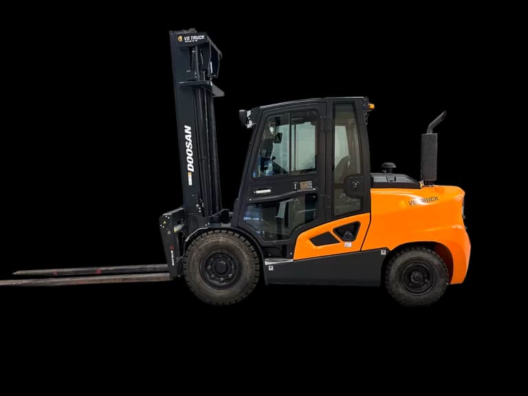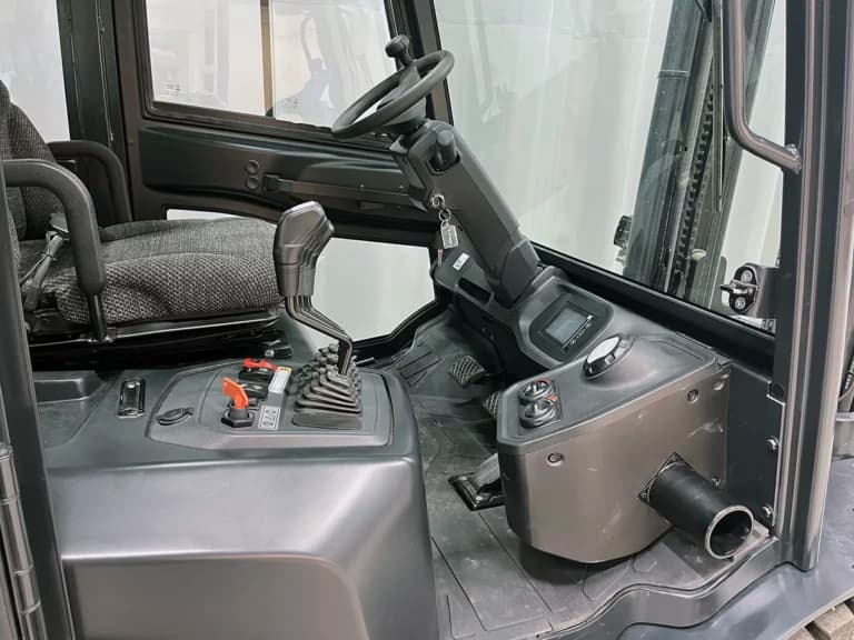5,5-tons dieseltruck med hytt och hyttvärmare. Integrerat ELM-aggregat med sidoföring och gaffelspridning (gaffeldimensioner: 150x60x2400) God sikt och Mycket låga timmar! VTF-belysning, dubbel arbetsbelysning fram.