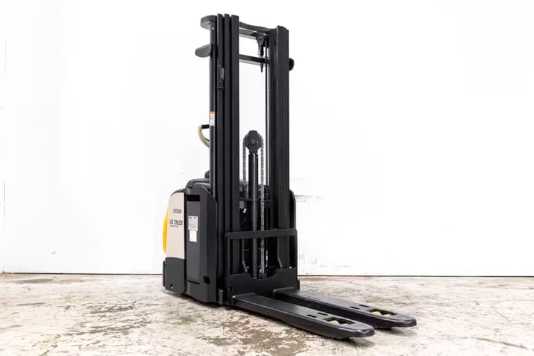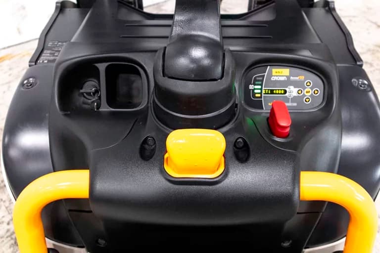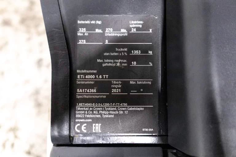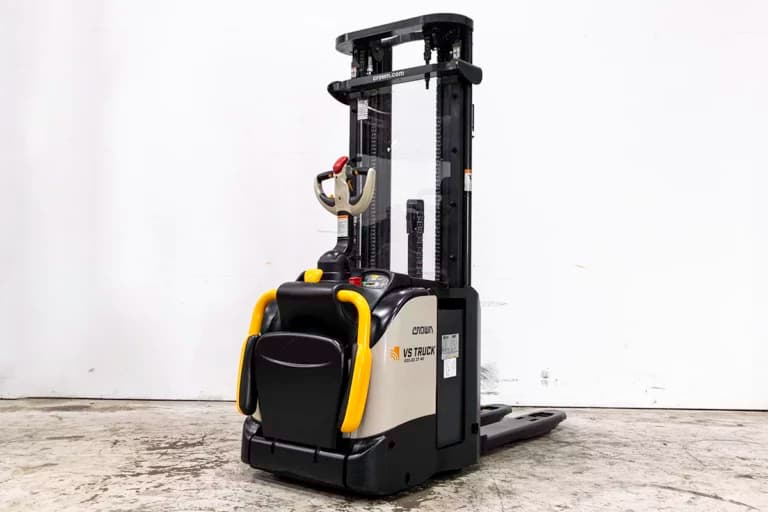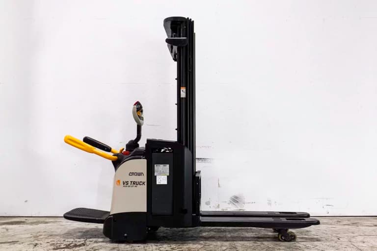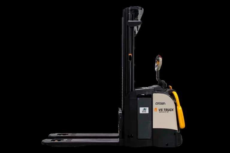 Fullt utrustad ledstaplare från Crown med rejäl lyftkapacitet om 1600 kg. Initiallyft, frilyft, servostyrning och ståplatta. God lyfthöjd om 4750 mm.