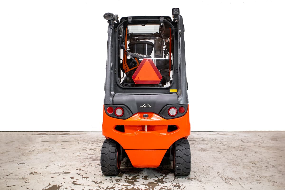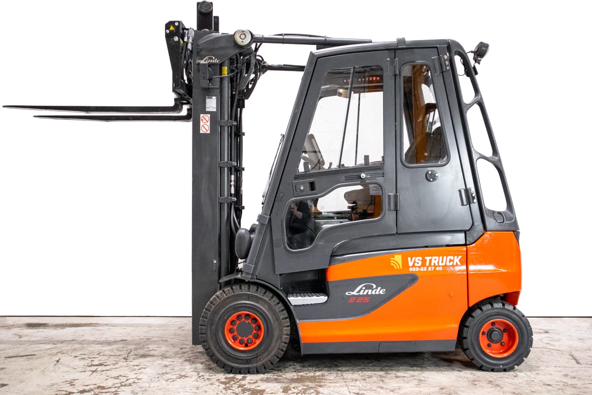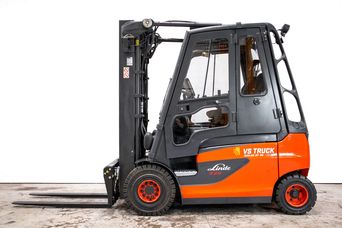 Välutrustad Linde containergående 2,5-tons eldriven motviktstruck med hytt och hyttvärmare i fint skick. Nytt integrerat aggregat (ELM). Nya däck runtom. Valbar färdriktningsväljare dubbelpedal/hand. Grammer luftstol. Integrerad laddare. VTF-belysning, extra dubbel mastmonterad belysning, enkel bak. Bluespot bak. Interiörbelysning, radio & dokumenthållare med belysning. Vindrutetorkare fram, bak & på tak.