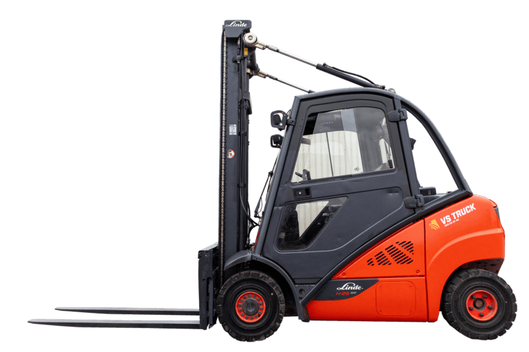 2,5-tons dieseldriven motviktstruck från Linde. Trucken har hytt och hyttvärmare. Rejäl lyfthöjd om 4550 mm med god sikt! Aggregat med sidoföring och gaffelspridning.