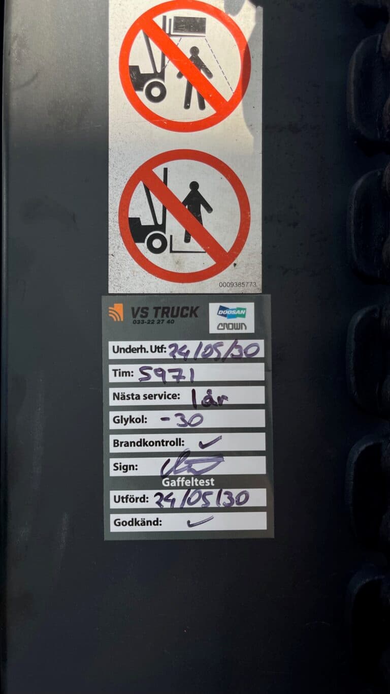 Gafflarna bär upp hela lasten och måste därför vara i mycket gott skick. Vid gaffeltestet kontrollerar vi fästklackar, skänkel och blad och undersöker om det finns eventuell sprickbildning. Nedslitna gafflar riskerar att brista och kan orsaka allvarliga olyckstillbud.