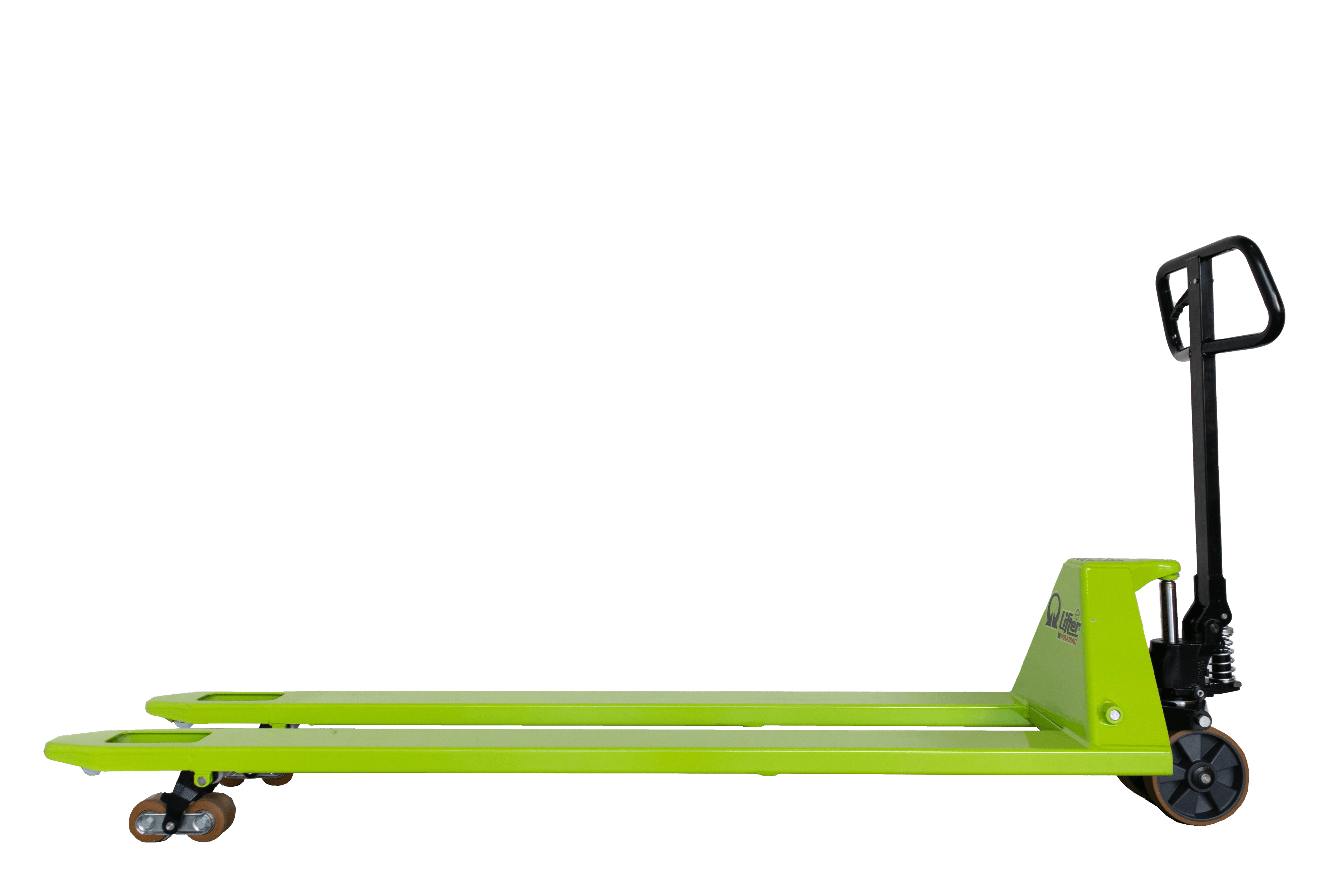 Pallyftare med 3000 kg lyftkapacitet från Pramac. Trucken har quicklift och klätterhjul. Boggiehjul i polyuretan. 2000 mm långa gafflar.