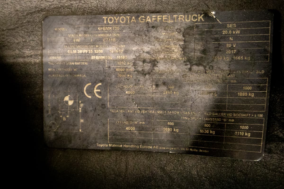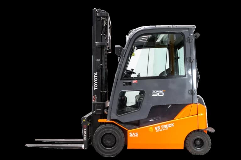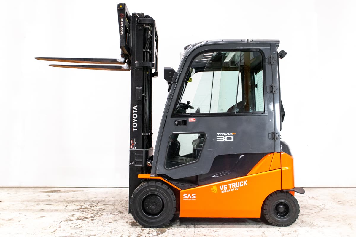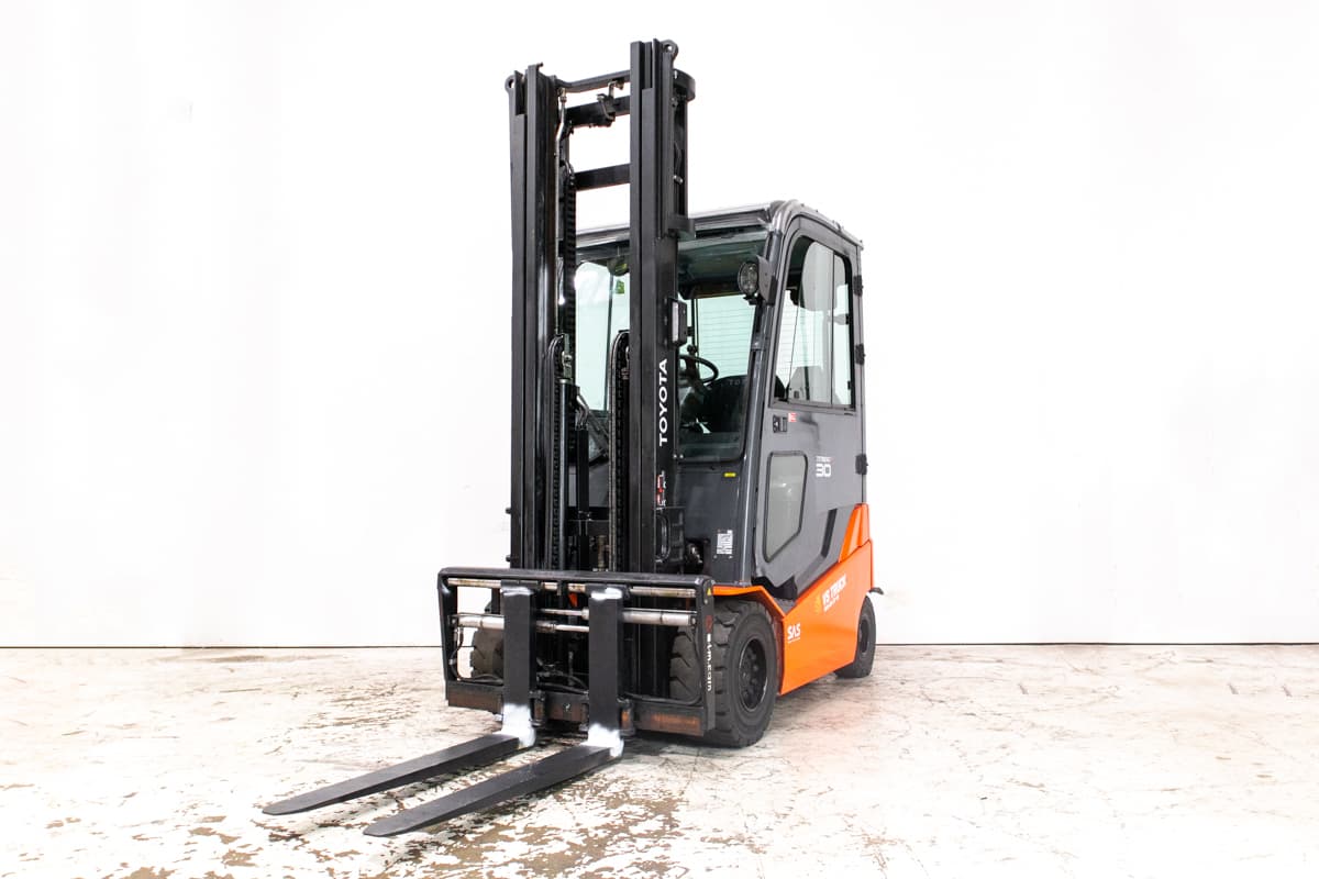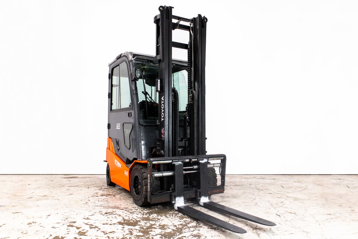3-tons eldriven motviktstruck från Toyota med hytt & hyttvärmare. Aggregat med sidoföring och gaffelspridning. Låga timmar! VTF-belysning och LGF-skylt = vägtrafikredo! Bluespot bak. Kodstart.